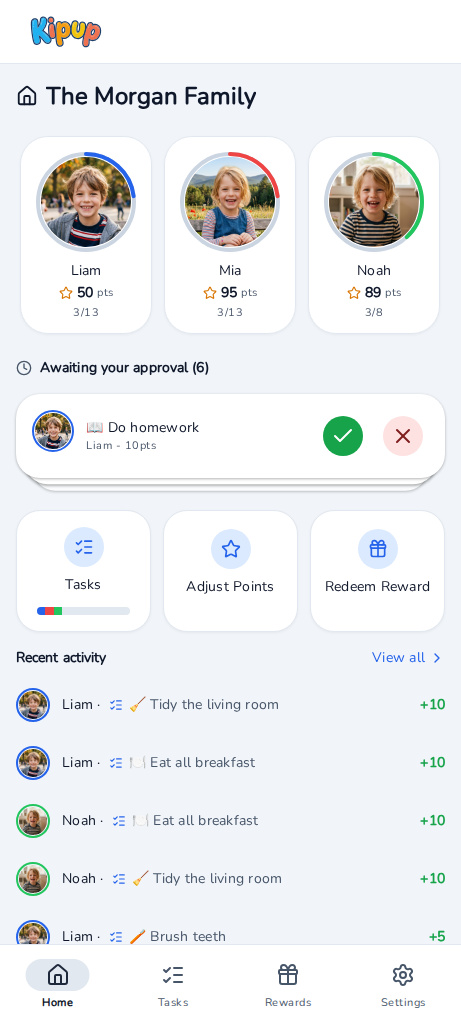 Kipup makes daily tasks fun with points, rewards, and real accountability — so you stop nagging and start cheering.