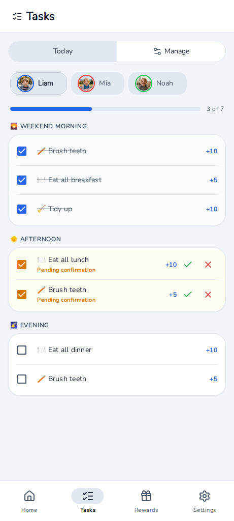 Everyone can see tasks and points at a glance — perfect for keeping the whole house motivated through breakfast chaos.