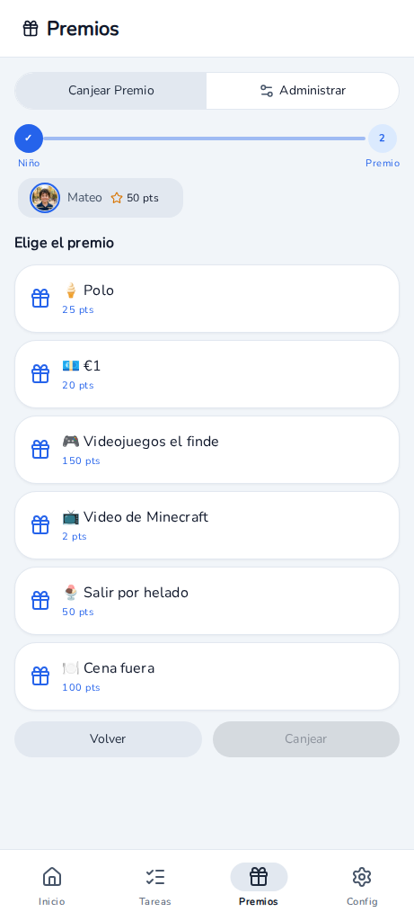 Los niños canjean puntos por recompensas que tú defines — tiempo de pantalla, meriendas, un paseo al parque. Tú eliges lo que los motiva.